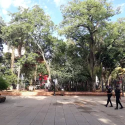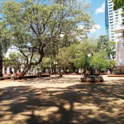 The main square of Posadas, surrounded by important government buildings, shops, and cafes.