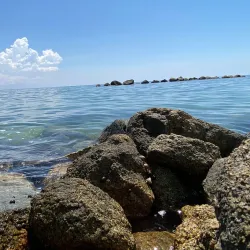 The beach is family-friendly and offers facilities such as food stands and rental equipment for water activities.