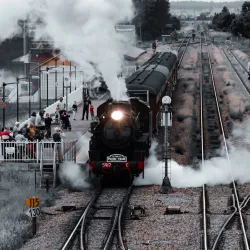 The station building features classic architectural elements and is part of the town's historical narrative.