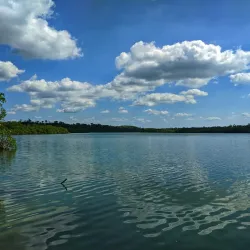 Visitors can explore the lagoon to see wildlife such as crocodiles, manatees, and a variety of bird species, making it a popular spot for eco-tourism and nature photography.