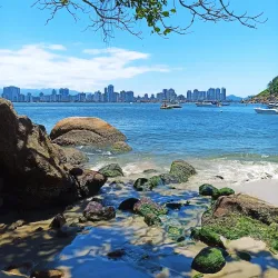 A nearby beach offering a peaceful coastal environment for relaxation and water activities. It is less crowded than other beaches in the Baixada Santista region, making it ideal for visitors seeking tranquility.