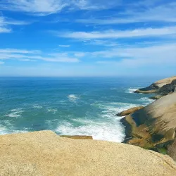 The beach is surrounded by lush hills and offers opportunities for hiking, whale watching, and enjoying local seafood in nearby restaurants.