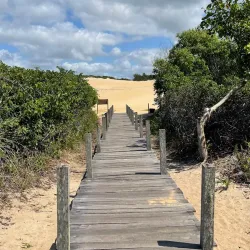 A beach area near Linhares known for its natural beauty and tranquility. It is a popular spot for swimming, sunbathing, and enjoying the coastal environment.