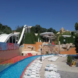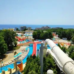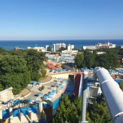 Aquapolis is a large water park in Golden Sands featuring numerous slides, pools, and attractions suitable for all ages. It is a popular destination for families and thrill-seekers alike.