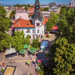 A historic clock tower located in the city center, serving as a notable landmark and meeting point.