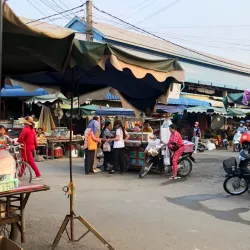 The local market in Svay Rieng is a bustling hub where visitors can experience everyday life, shop for fresh produce, handicrafts, and sample traditional Cambodian street food.