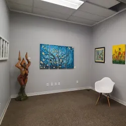 This gallery features works by local and regional artists, showcasing a variety of artistic styles and mediums.