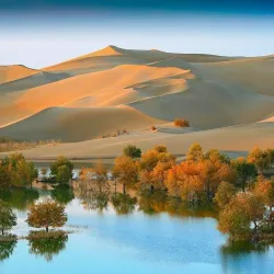 The vast Taklamakan Desert lies to the south of Aksu and is one of the largest sandy deserts in the world. It offers adventurous travelers the chance to explore its unique desert landscapes and experience the harsh beauty of this environment.