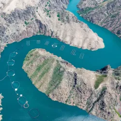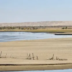 The river's presence supports the surrounding oases and settlements, making it an important natural feature near Aksu.