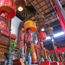 The temple grounds include beautiful gardens, ancient halls, and cultural relics, making it a significant spiritual and historical site in the city.