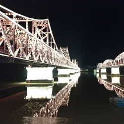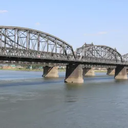 The Yalu River Broken Bridge is a historic site symbolizing the Korean War era. Originally a complete bridge connecting China and North Korea, it was partially destroyed during the conflict and now stands as a monument and tourist attraction.