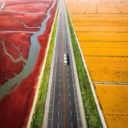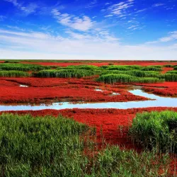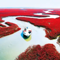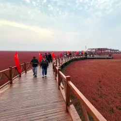 The Red Beach is Panjin's most famous attraction, known for its vast expanse of red-colored Suaeda salsa plants that create a striking landscape during autumn. This unique natural phenomenon attracts photographers, nature enthusiasts, and tourists from around the world.
