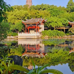 Qinghui Garden is one of the four famous gardens in Guangdong Province, known for its classical Lingnan architecture and beautiful landscaping. The garden features elegant pavilions, winding corridors, rockeries, and tranquil ponds, offering visitors a peaceful retreat.