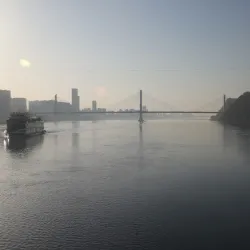 It provides scenic views of the river and city skyline, especially at sunset.