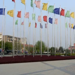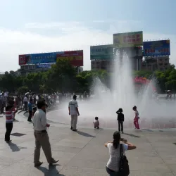 Yiling Square is a central public space in Yichang city, featuring landscaped gardens, fountains, and cultural monuments.
