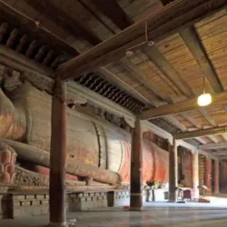The Giant Buddha Temple is an ancient Buddhist temple complex known for its massive reclining Buddha statue, which dates back to the Western Xia Dynasty. The temple also features numerous other Buddha statues and intricate murals that reflect the region's religious history.