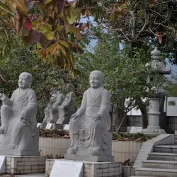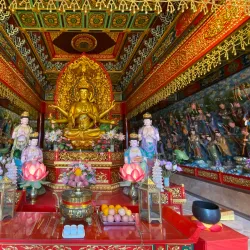 The temple grounds include ancient statues, prayer halls, and beautifully maintained gardens.