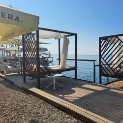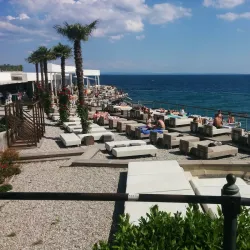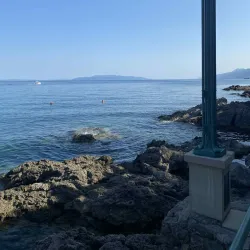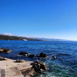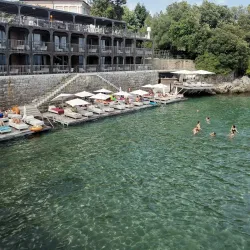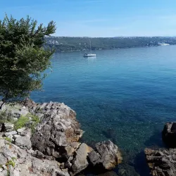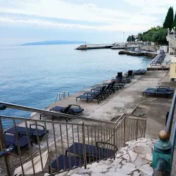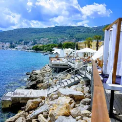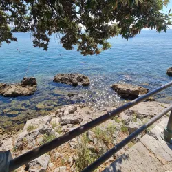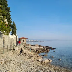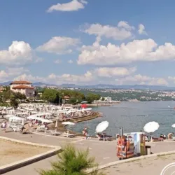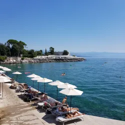 Opatija Beach offers a mix of pebbly and rocky shores with crystal-clear waters, ideal for swimming and sunbathing.