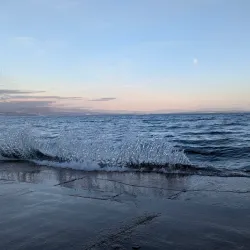 The beach is easily accessible from the town center and is lined with amenities including cafes and rental services for water sports.