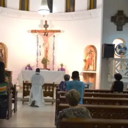 The church often features religious art and hosts community events.