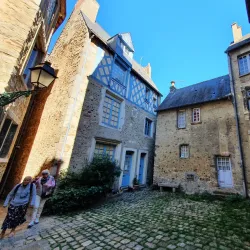 Walking through this area, visitors can enjoy charming shops, cafes, and landmarks such as the medieval ramparts and the Maison du Pilier Rouge.