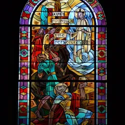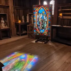 The church's interior features beautiful stained glass windows and intricate woodwork, reflecting the town's heritage.