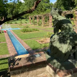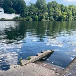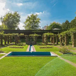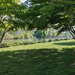 A beautifully landscaped riverside garden along the Seine, perfect for relaxation and outdoor activities.