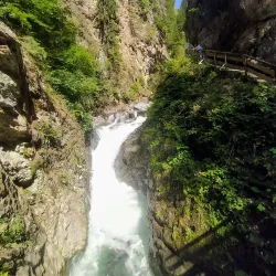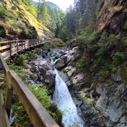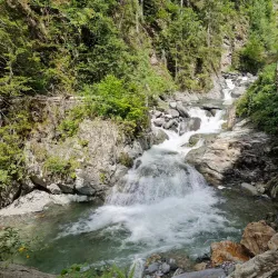 The trail to Cascade de la Diosaz offers scenic views of the surrounding forest and mountains, making it a refreshing outdoor experience.