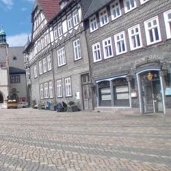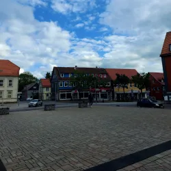 The central square of Clausthal, surrounded by traditional half-timbered houses, shops, and cafes. It is a lively spot for socializing and experiencing local culture.