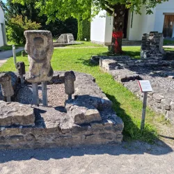 An open-air archaeological site displaying the remains of the Roman city of Cambodunum, including foundations of buildings, streets, and other structures.