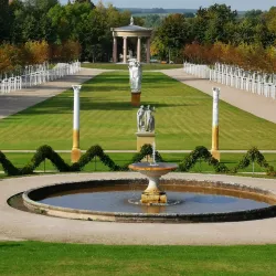 The Schlossgarten is a beautifully landscaped garden surrounding the Neustrelitz Palace, featuring baroque and English garden styles.