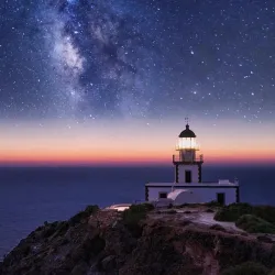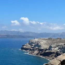 A historic lighthouse located on the southern tip of Santorini near Akrotiri.