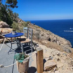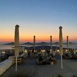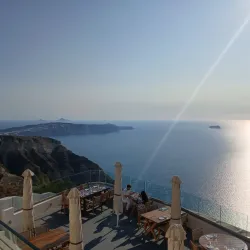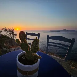 It offers scenic views of the caldera and the Aegean Sea, especially at sunset.