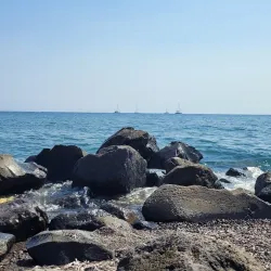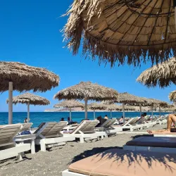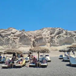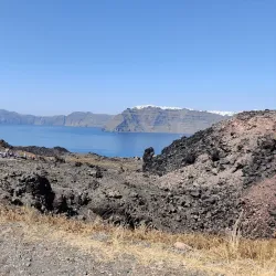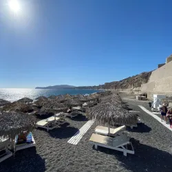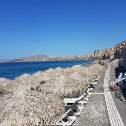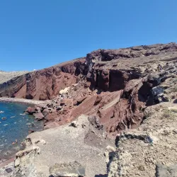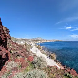 A striking beach near Akrotiri known for its red volcanic sand and cliffs.