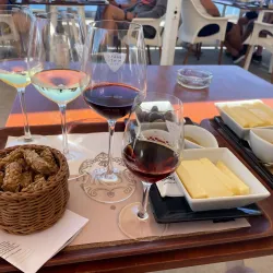 Several wineries offer tours and tastings, showcasing local grape varieties like Assyrtiko.