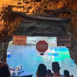 Melissani Cave is a stunning underground lake located near Sami. Visitors can take boat tours inside the cave to admire the unique blue waters illuminated by sunlight filtering through a collapsed roof, creating a magical atmosphere.