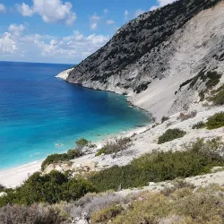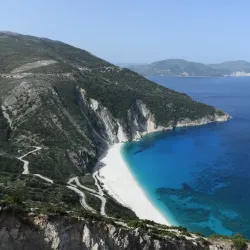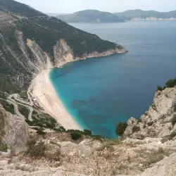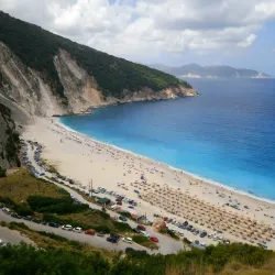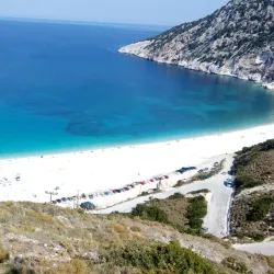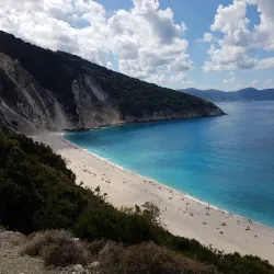 Myrtos Beach is one of the most famous beaches in Greece, known for its striking turquoise waters and white pebble shore. Surrounded by steep cliffs, it offers breathtaking views and crystal-clear waters ideal for swimming and sunbathing.