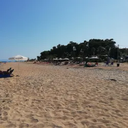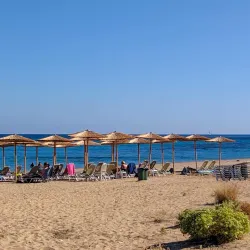 Skala Beach is a long sandy beach with clear waters, ideal for families and water activities. The nearby village of Skala offers tavernas and shops, making it a lively spot for tourists.