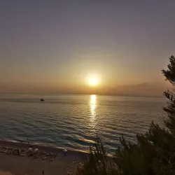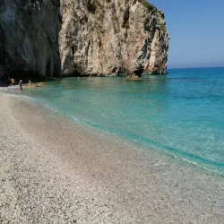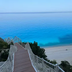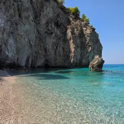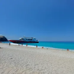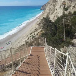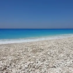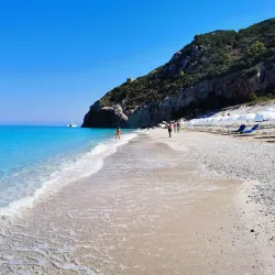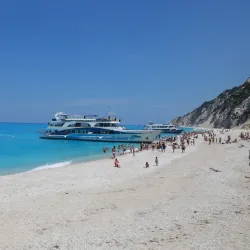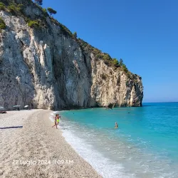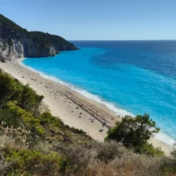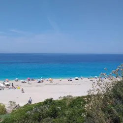Milos Beach is a small, secluded beach near Agios Nikitas, known for its clear waters and peaceful environment. It is accessible by foot or boat and is perfect for swimming and snorkeling.