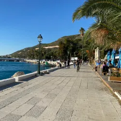 Loutraki Beach is a beautiful stretch of coastline with clear waters and pebbled shores. It is ideal for swimming, sunbathing, and water sports. The beach is well-equipped with amenities and is a popular spot for both locals and tourists.