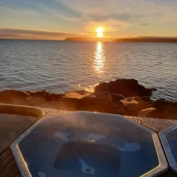 The Westfjords region features several natural hot springs and geothermal pools where visitors can relax and enjoy the warm waters surrounded by nature.