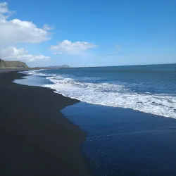 While a bit further from Hvolsvollur, the black sand beaches of Reynisfjara are a must-visit attraction in southern Iceland. Known for their striking basalt columns, powerful waves, and sea stacks, these beaches offer dramatic coastal scenery.