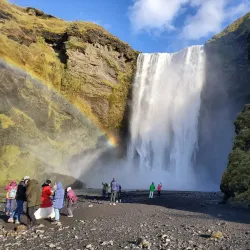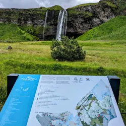 Seljalandsfoss is one of Iceland's most iconic waterfalls, known for the unique experience it offers: visitors can walk behind the waterfall and view it from inside a cave-like space. The waterfall drops 60 meters and is part of the Seljalands River, which originates from the Eyjafjallajökull glacier.