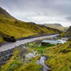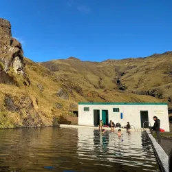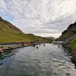 Seljavallalaug is one of Iceland's oldest swimming pools, nestled in a scenic valley near Hvolsvollur. The pool is fed by natural hot springs and offers a unique swimming experience surrounded by mountains.