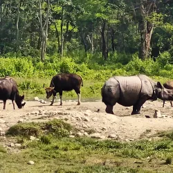 Jaldapara National Park is renowned for its population of the Indian one-horned rhinoceros and is a major wildlife sanctuary in the region. The park also hosts elephants, leopards, deer, and a variety of bird species, making it a prime spot for wildlife safaris and bird watching.