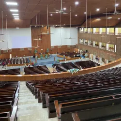 Visitors can attend services or simply admire the building's design and peaceful surroundings.