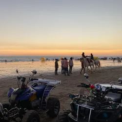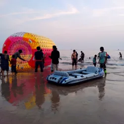 Mandvi Beach is a serene and clean beach ideal for relaxation, swimming, and enjoying the sunset. The beach is less crowded compared to other tourist spots, making it perfect for a peaceful day by the sea. Local vendors offer camel and horse rides along the shore.