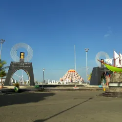 Losari Beach is a famous waterfront area in Makassar known for its beautiful sunsets and vibrant atmosphere. It is a popular spot for locals and tourists to relax and enjoy street food vendors.