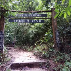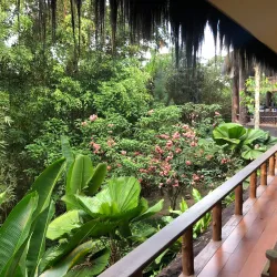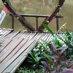 The botanical garden features a variety of tropical plants and trees native to East Kalimantan. It serves as a conservation area and educational site for visitors interested in botany and ecology.
