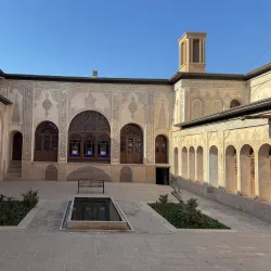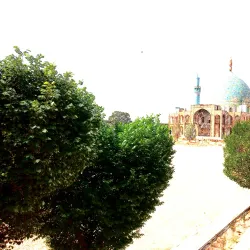 Agha Bozorg Mosque is a historic mosque and theological school in Kashan, known for its symmetrical design and elegant architecture. It features a large courtyard, domes, and intricate tile work.